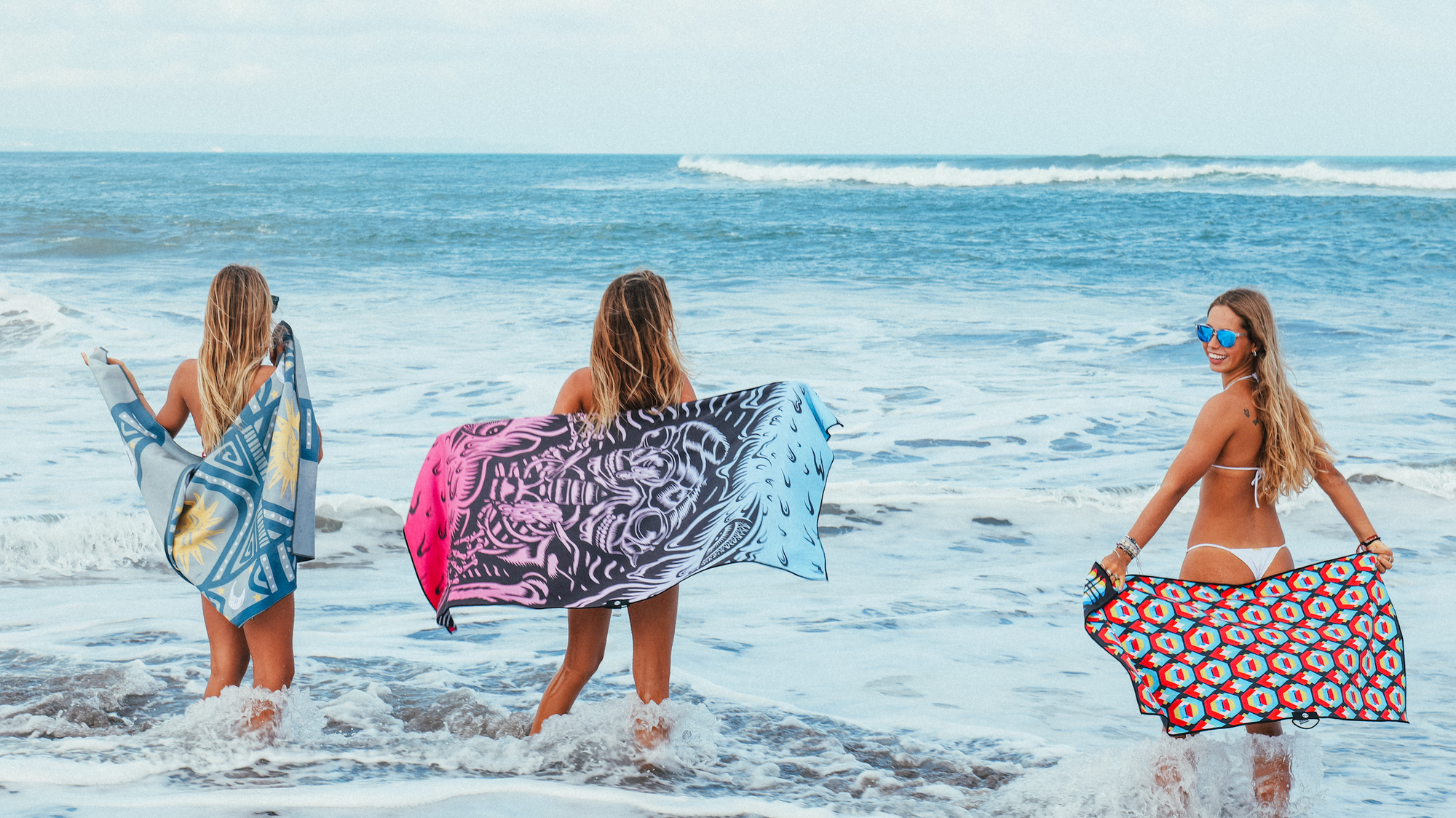 Happy Faced towels use performance microfiber that absorbs more water, dries faster, resists sand, and packs smaller than cotton. Every towel features exclusive artist-designed prints, so it feels like functional art instead of a basic bath towel.